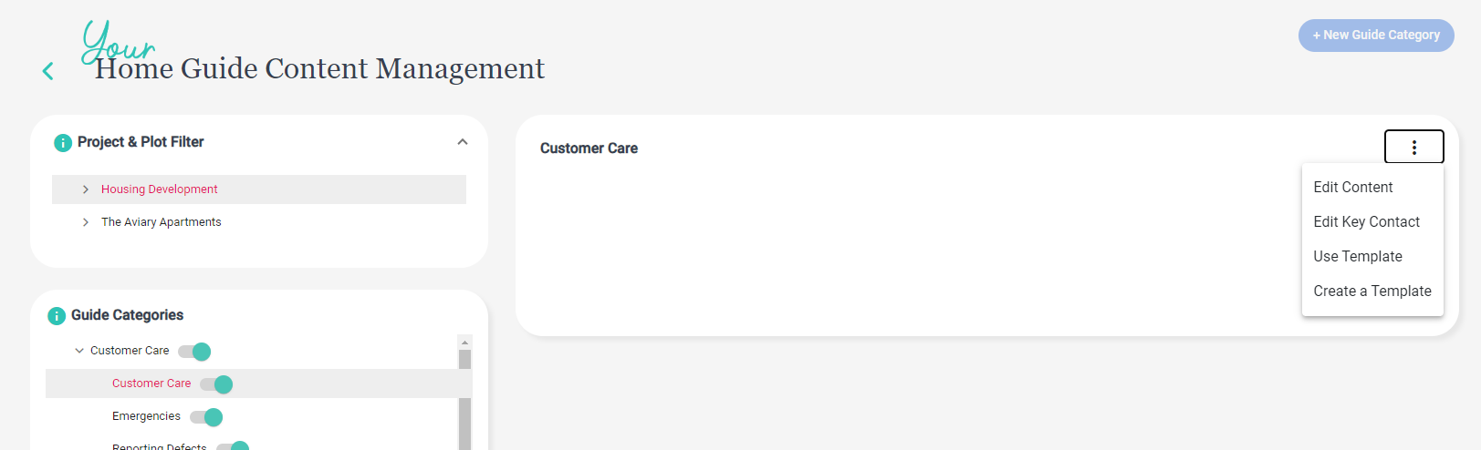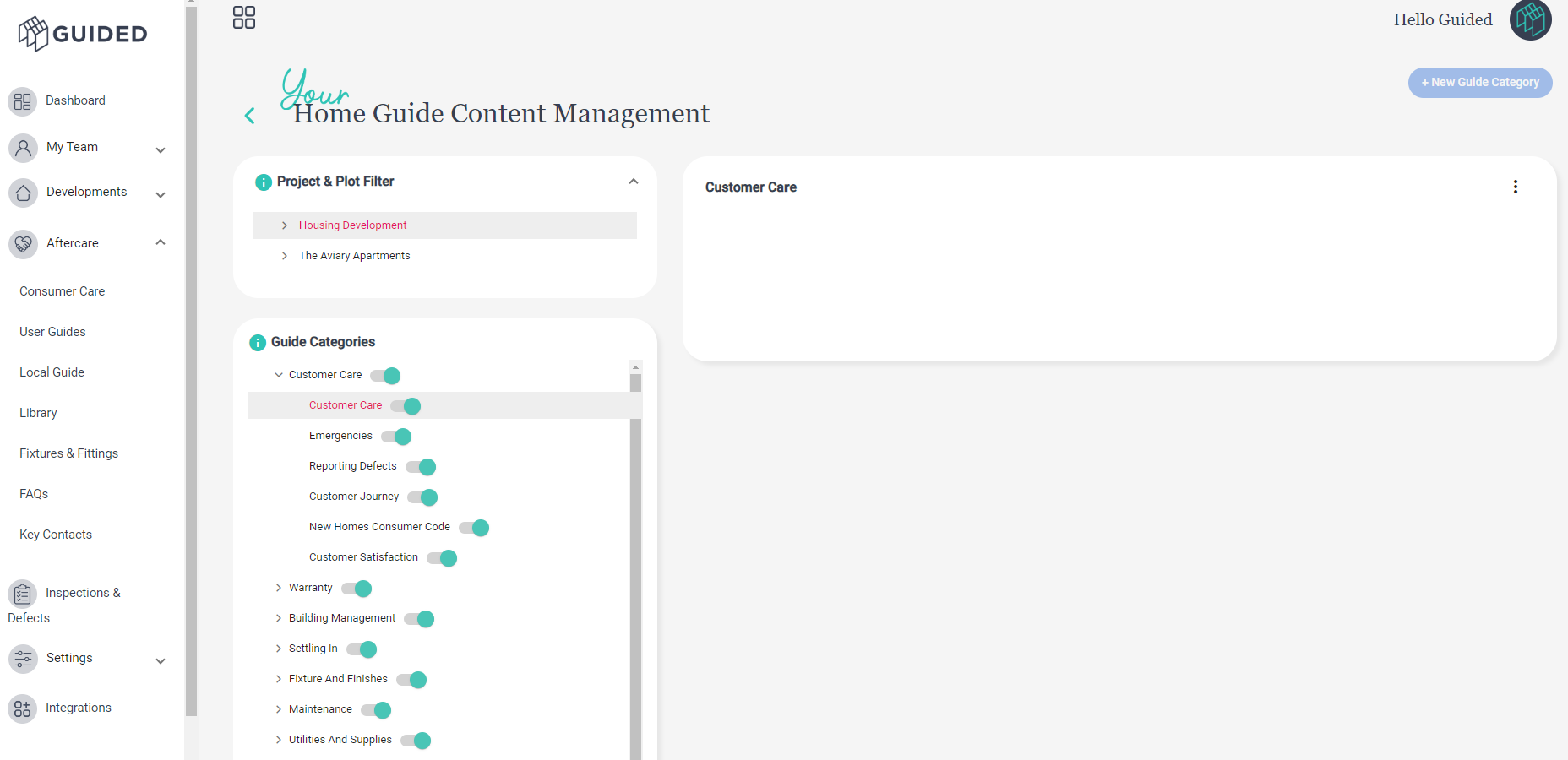 1. Hide User Guides: If you don't want to display certain user guides to a project / plots, you can use the toggle switches to hide them from homeowner/ residents view