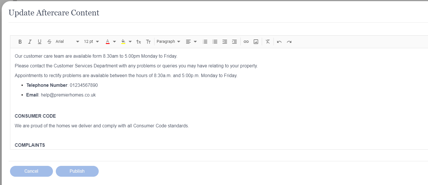 7. When Editing content you have full HTML control to use your own colours, styles etc and enrich content with images, links and attachments
