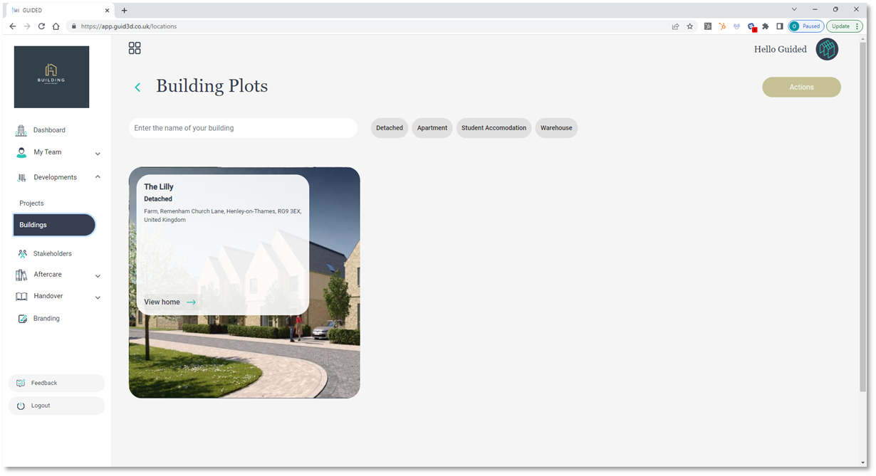 Guided provides the ability to quickly update the building plot address to reflect the postal address (when that is made available by Royal Mail/ the local authority).